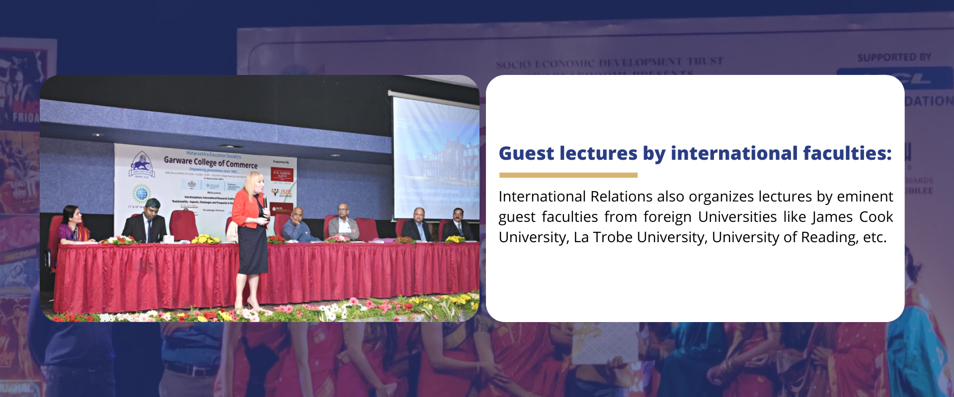 - The International Relations Committee was formed in 2016-17 to plan, design and execute the international activities of MES Garware College of Commerce.